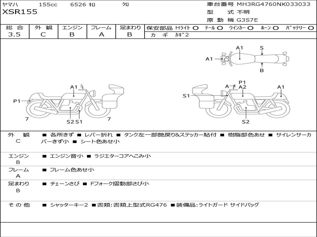 | Номер рамы / VIN | MH3RG4760NK033033 |