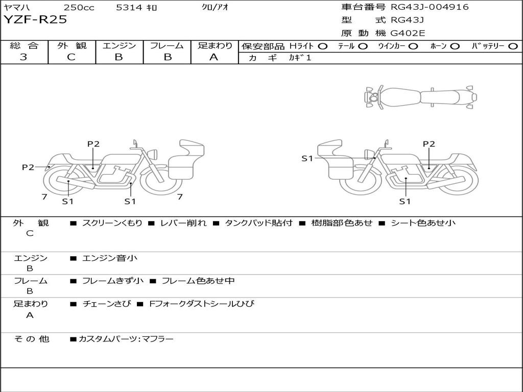 | Номер рамы / VIN | RG43J-004916 |