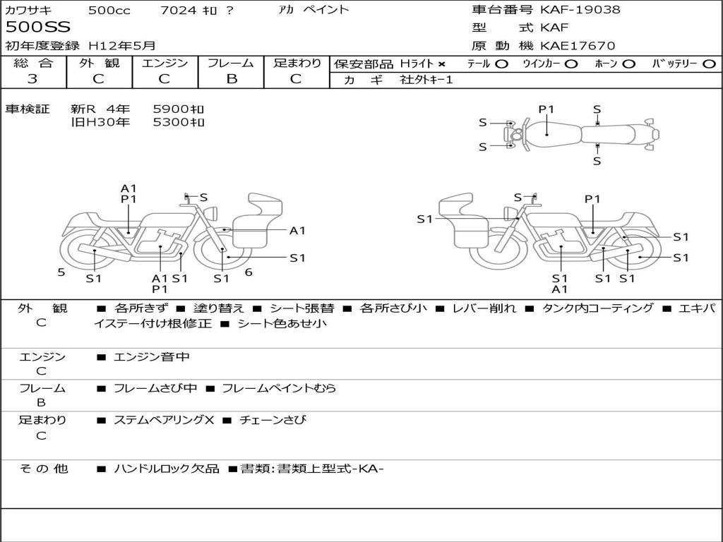 | Номер рамы / VIN | KAF-19038 |
