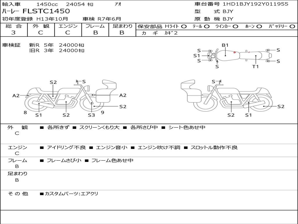 | Номер рамы / VIN | 1HD1BJY192Y011955 |