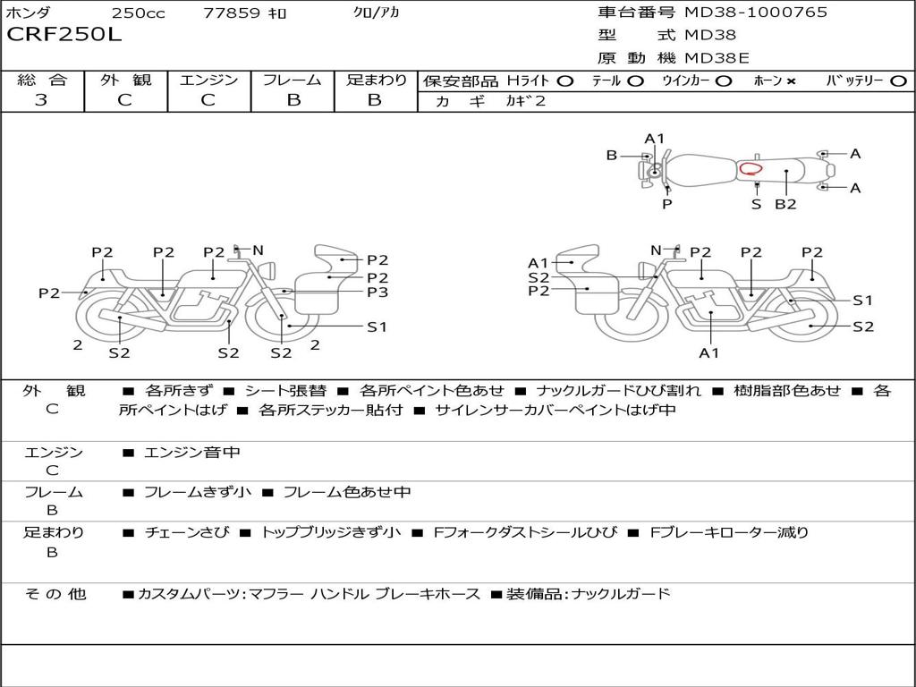 | Номер рамы / VIN | MD38-1000765 |
