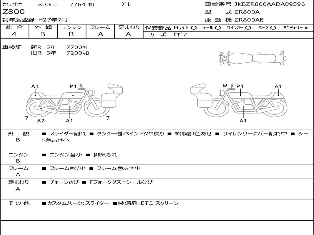 | Номер рамы / VIN | JKBZR800AADA09596 |