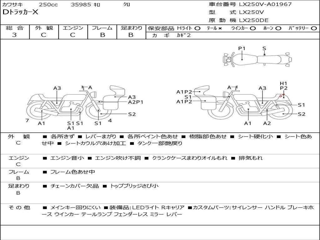 | Номер рамы / VIN | LX250V-A01967 |