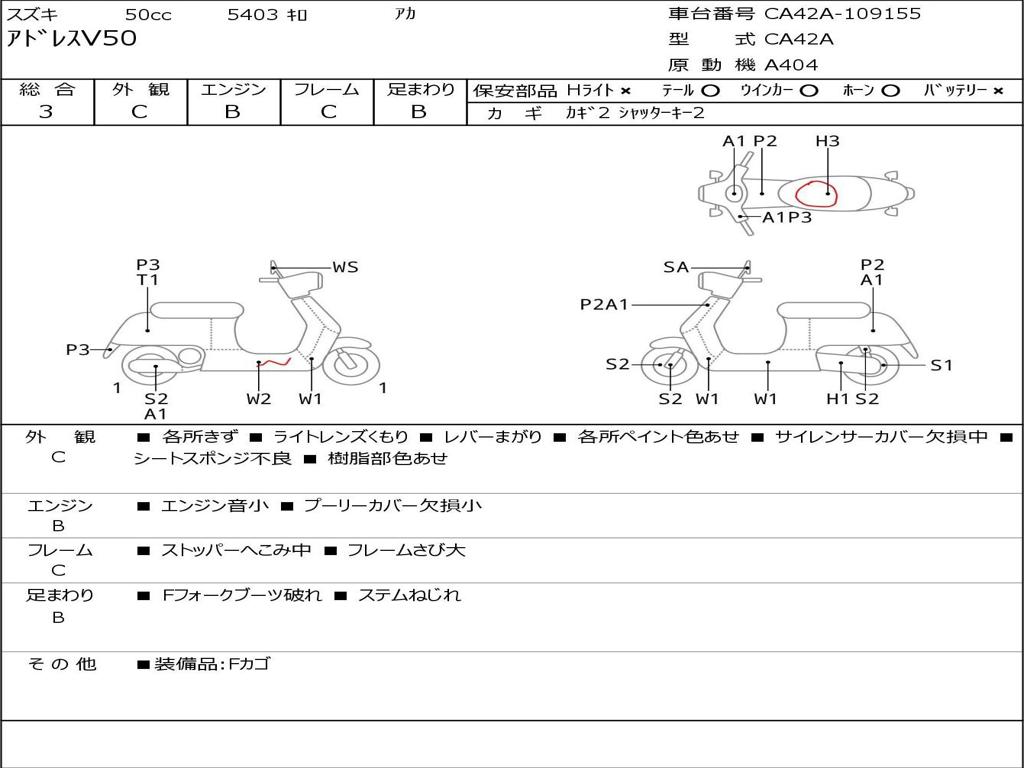 | Номер рамы / VIN | CA42A-109155 |