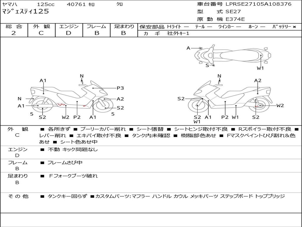 | Номер рамы / VIN | LPRSE27105A108376 |
