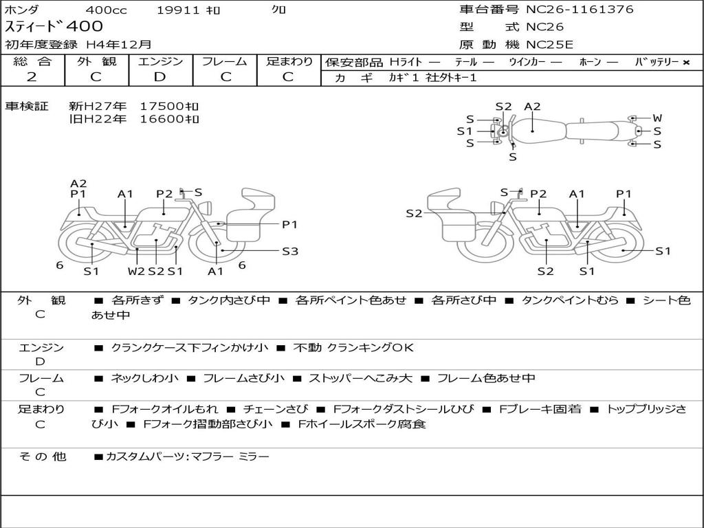 | Номер рамы / VIN | NC26-1161376 |