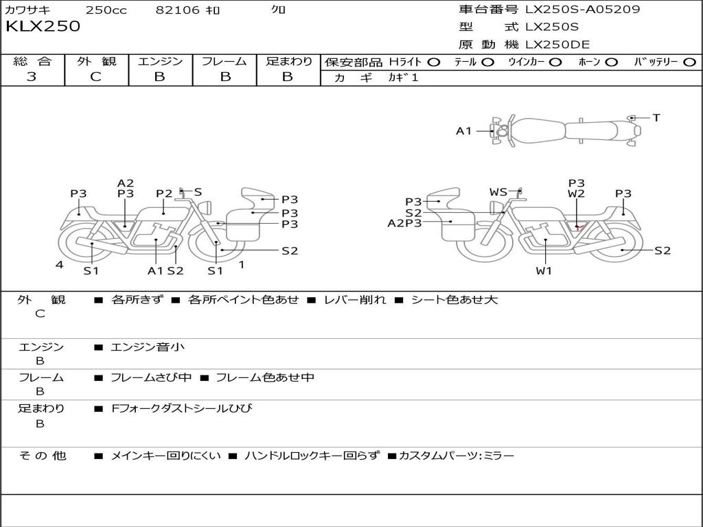 | Номер рамы / VIN | LX250S-A05209 |