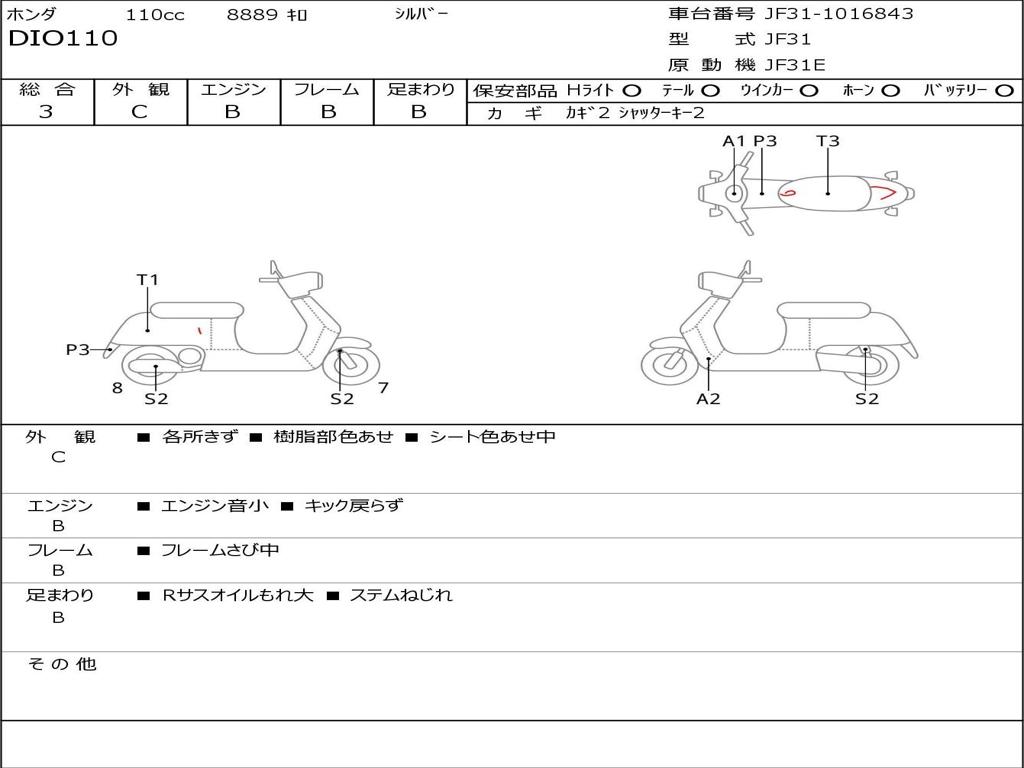 | Номер рамы / VIN | JF31-1016843 |
