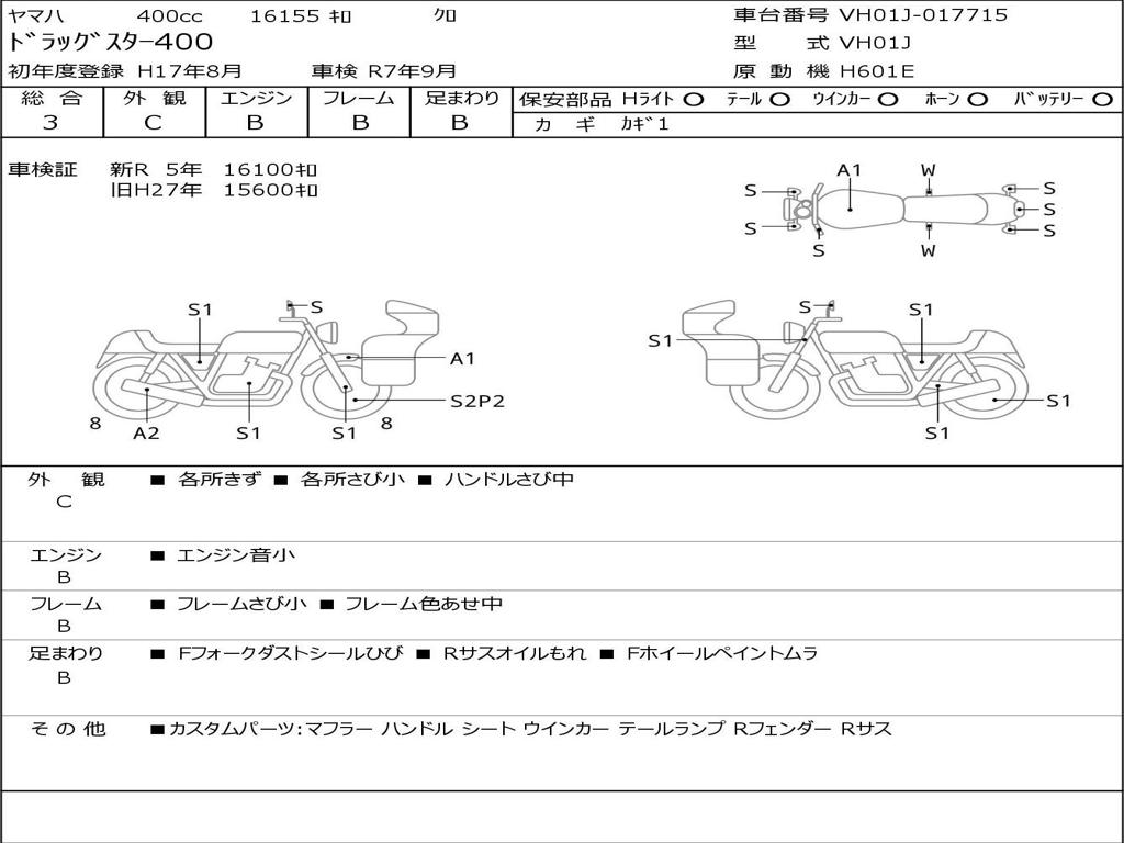 | Номер рамы / VIN | VH01J-017715 |