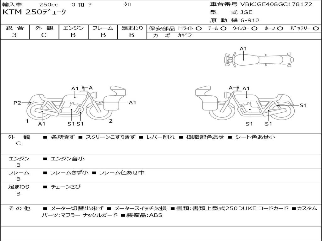 | Номер рамы / VIN | VBKJGE408GC178172 |
