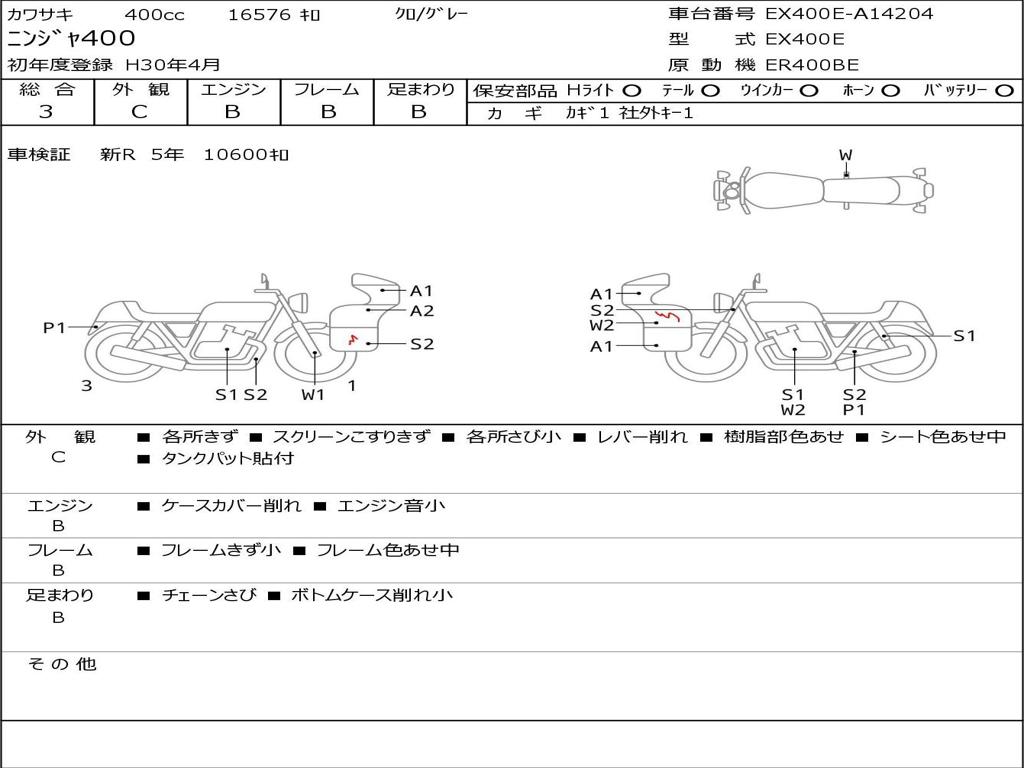 | Номер рамы / VIN | EX400E-A14204 |