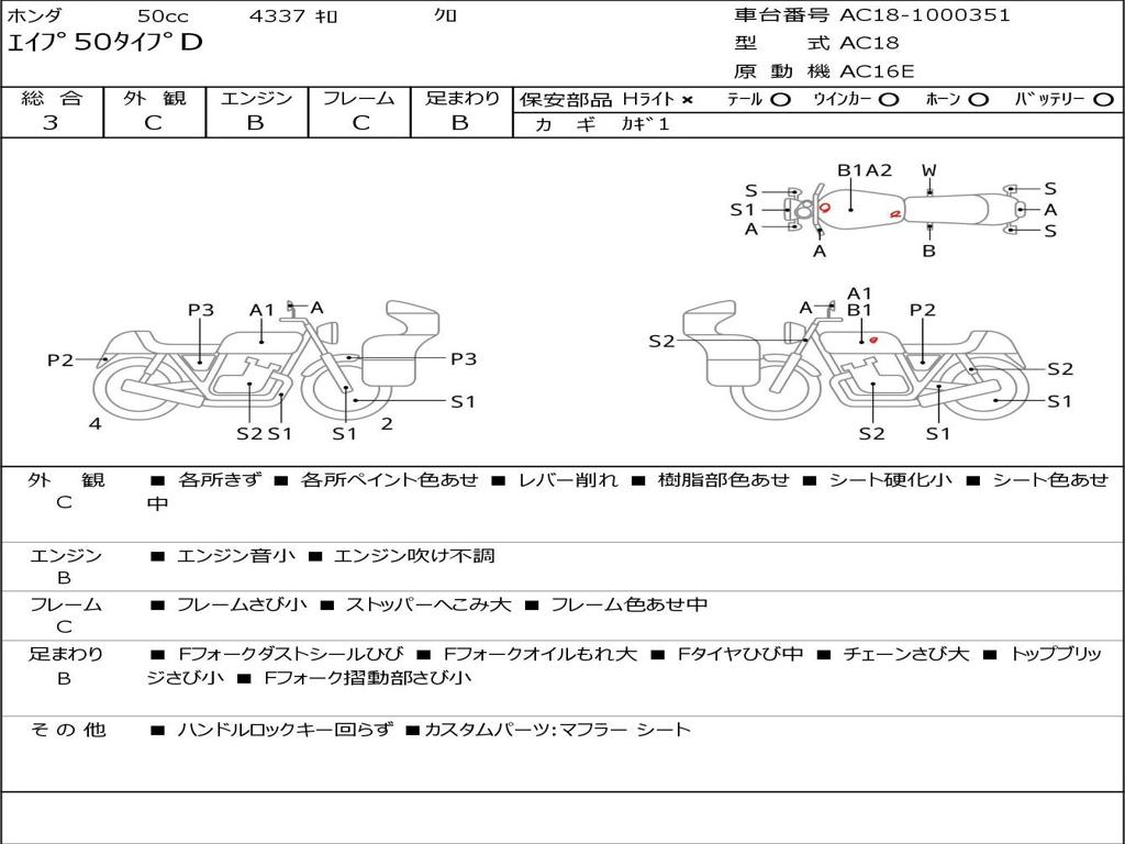 | Номер рамы / VIN | AC18-1000351 |