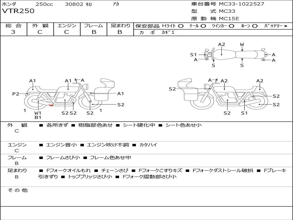 | Номер рамы / VIN | MC33-1022527 |