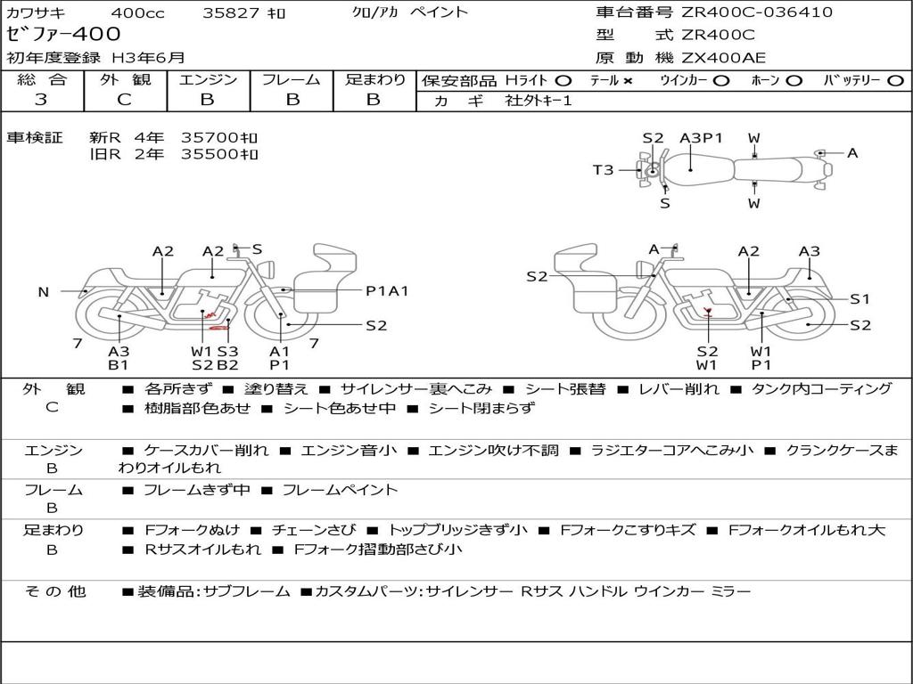 | Номер рамы / VIN | ZR400C-036410 |