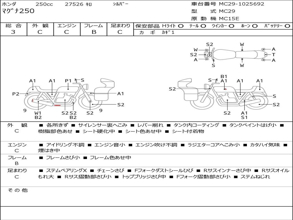 | Номер рамы / VIN | MC29-1025692 |