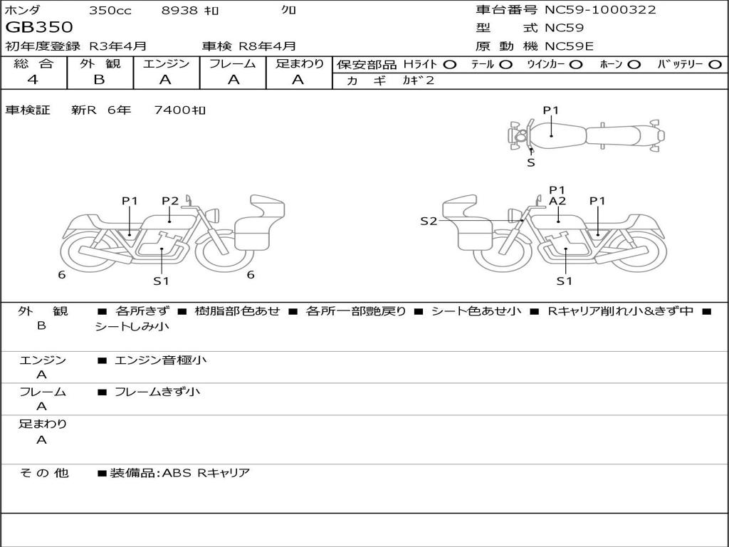 | Номер рамы / VIN | NC59-1000322 |