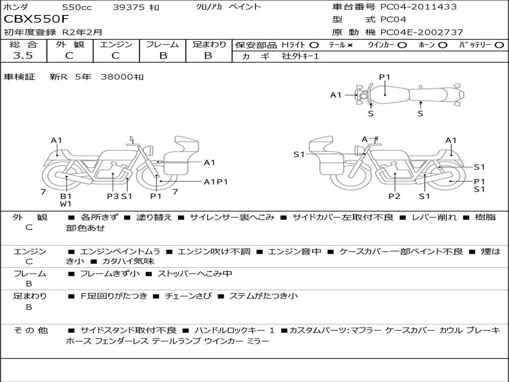 | Номер рамы / VIN | PC04-2011433 |