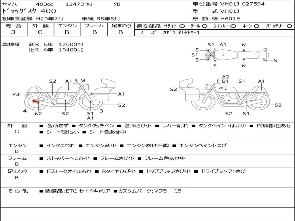 | Номер рамы / VIN | VH01J-027594 |