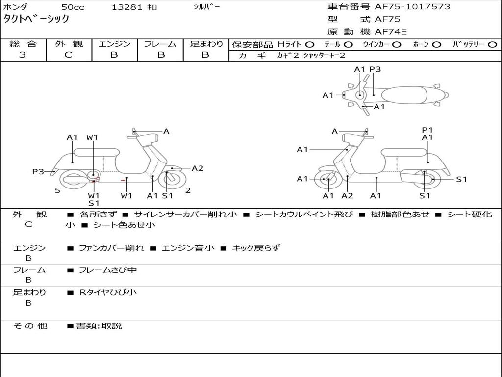 | Номер рамы / VIN | AF75-1017573 |