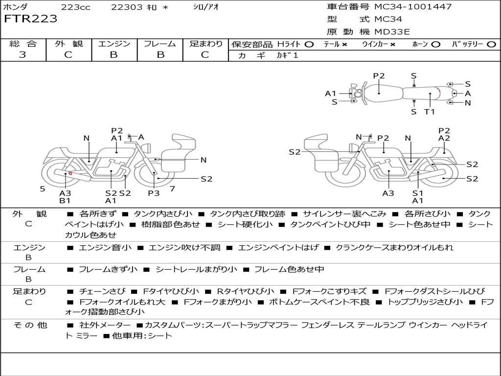 | Номер рамы / VIN | MC34-1001447 |