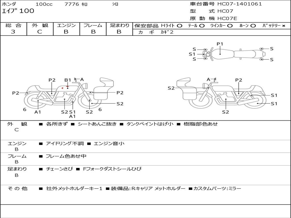 | Номер рамы / VIN | HC07-1401061 |