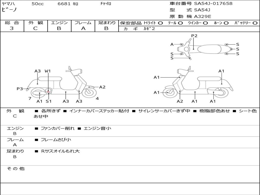 | Номер рамы / VIN | SA54J-017658 |