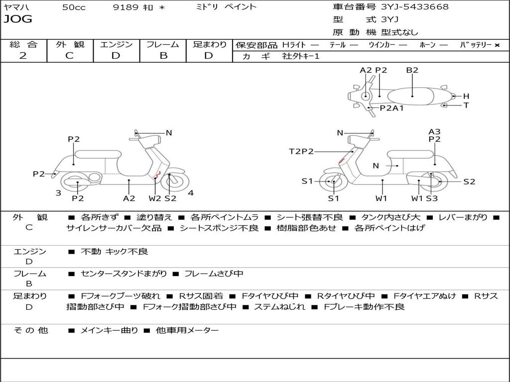 | Номер рамы / VIN | 3YJ-5433668 |