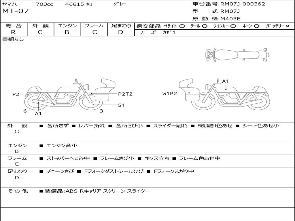 | Номер рамы / VIN | RM07J-000362 |