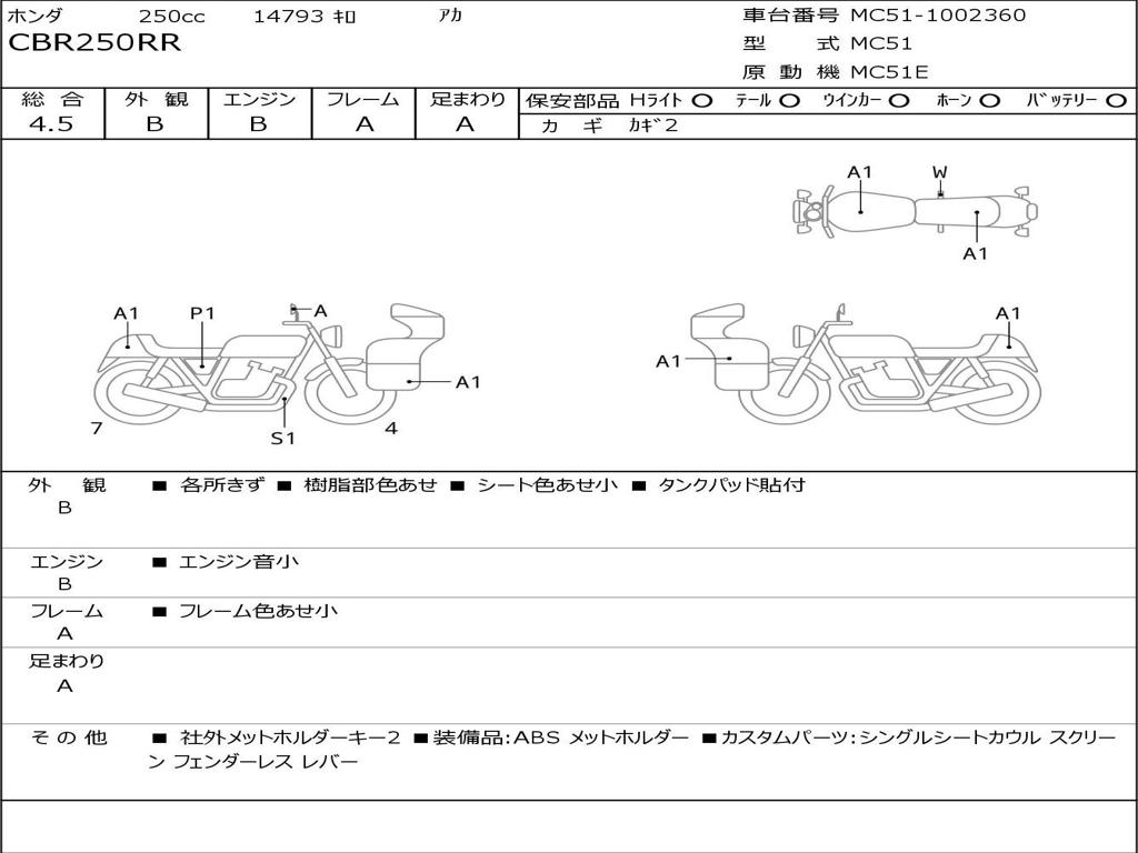 | Номер рамы / VIN | MC51-1002360 |