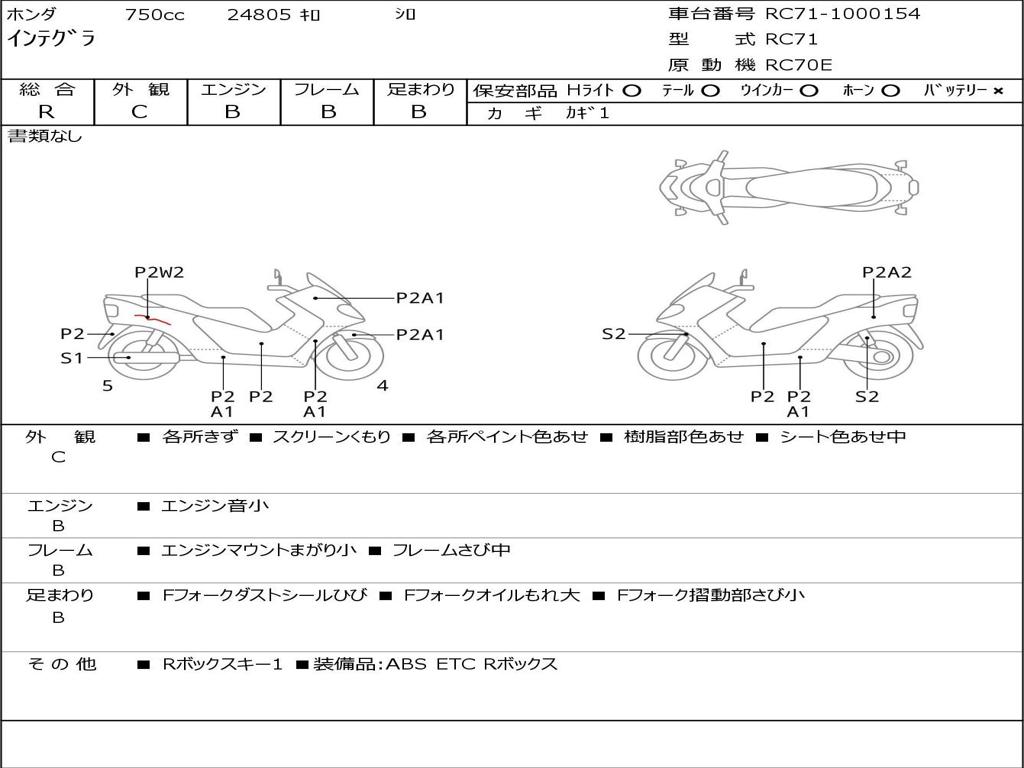 | Номер рамы / VIN | RC71-1000154 |