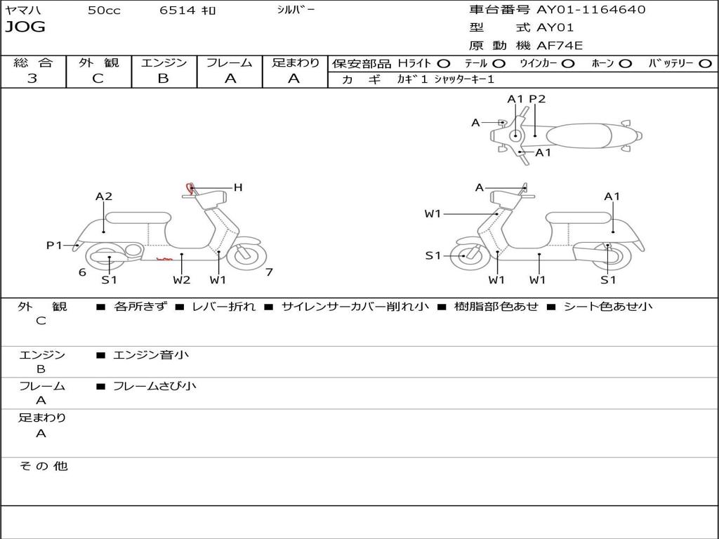 | Номер рамы / VIN | AY01-1164640 |