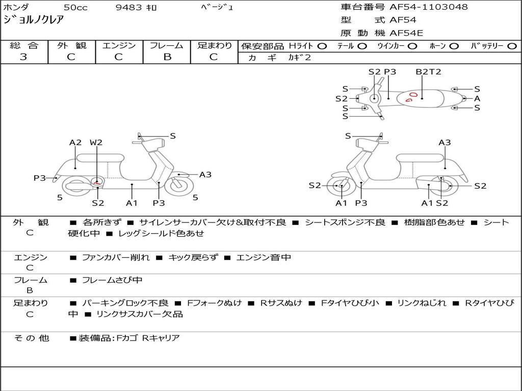 | Номер рамы / VIN | AF54-1103048 |