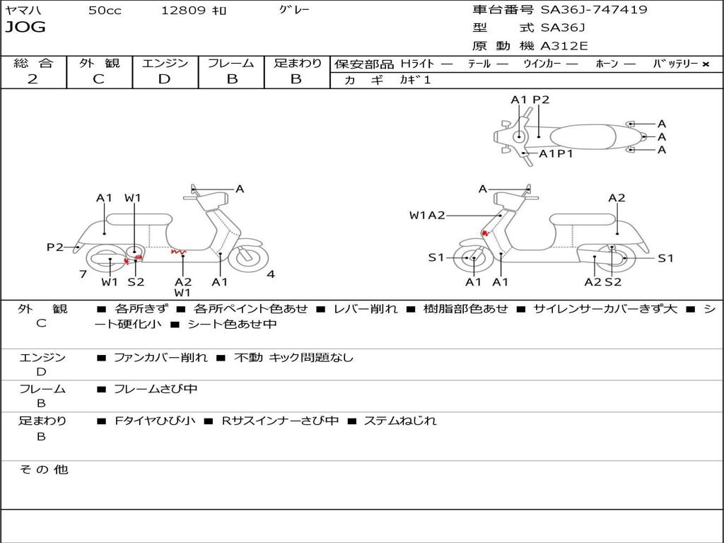 | Номер рамы / VIN | SA36J-747419 |
