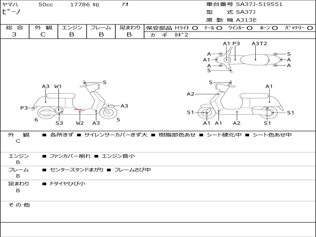| Номер рамы / VIN | SA37J-519551 |