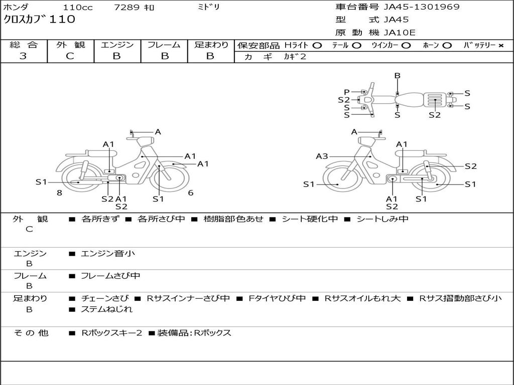 | Номер рамы / VIN | JA45-1301969 |