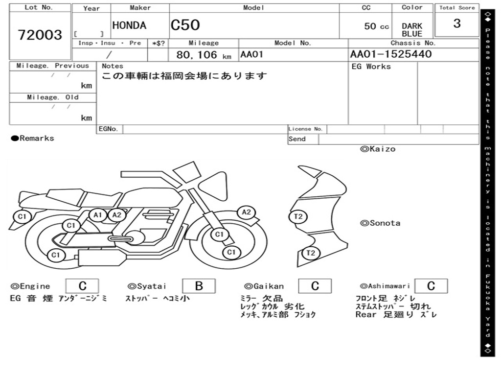 | Номер рамы / VIN | AA01-1525440 |