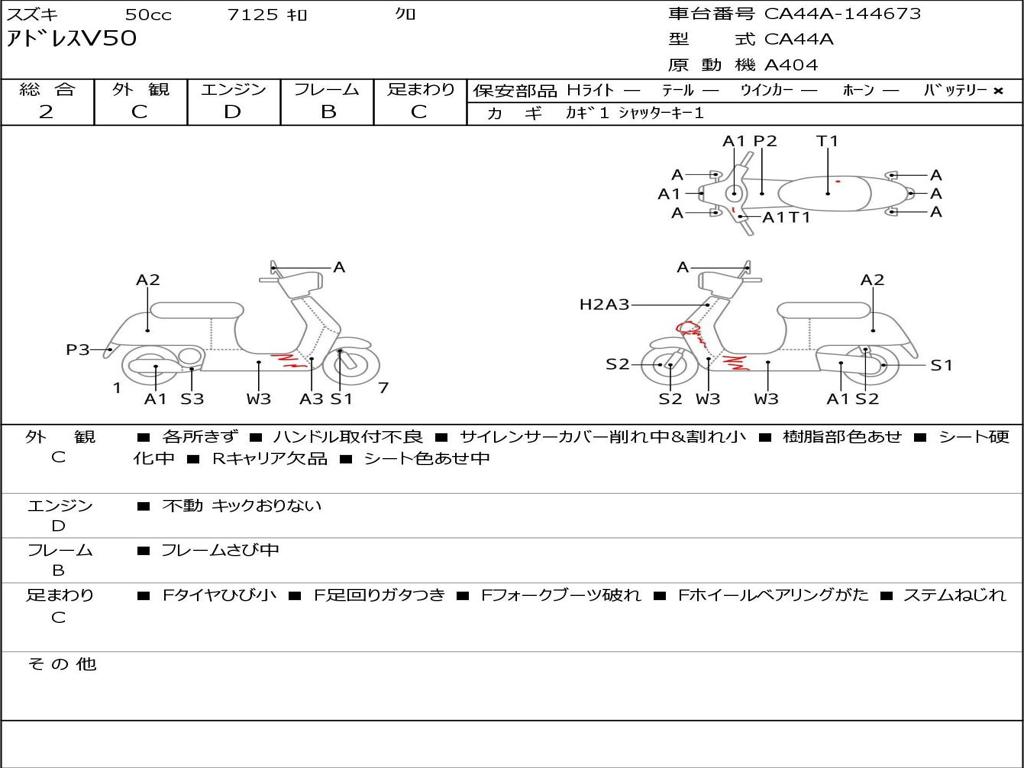 | Номер рамы / VIN | CA44A-144673 |