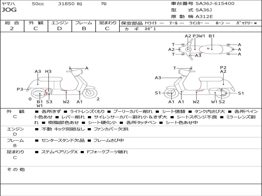 | Номер рамы / VIN | SA36J-615400 |