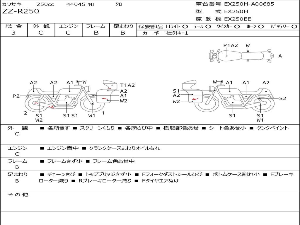 | Номер рамы / VIN | EX250H-A00685 |