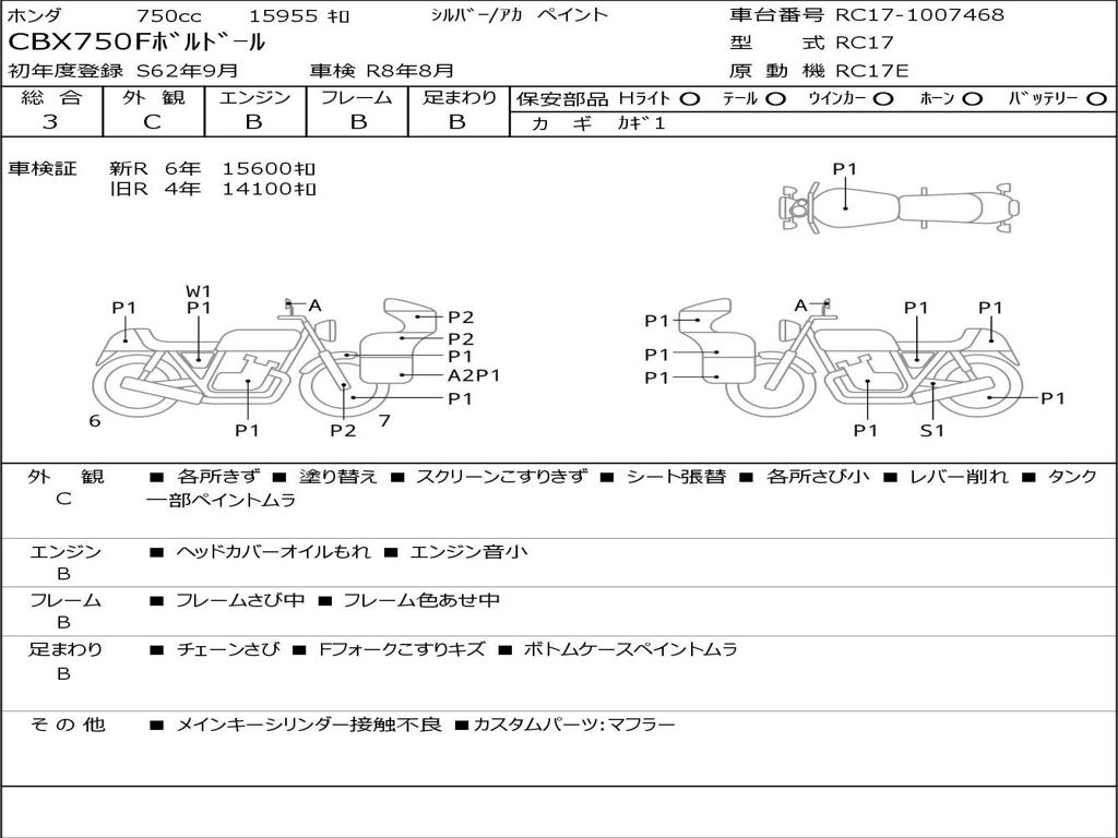 | Номер рамы / VIN | RC17-1007468 |