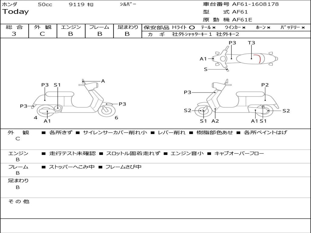 | Номер рамы / VIN | AF61-1608178 |