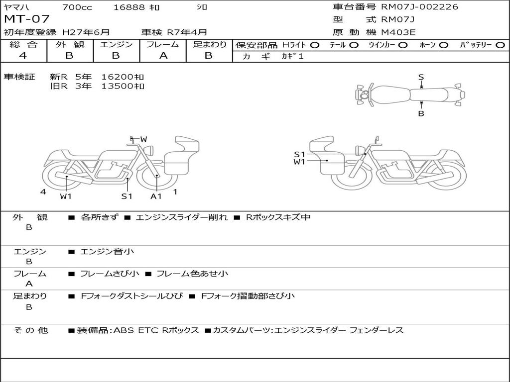 | Номер рамы / VIN | RM07J-002226 |