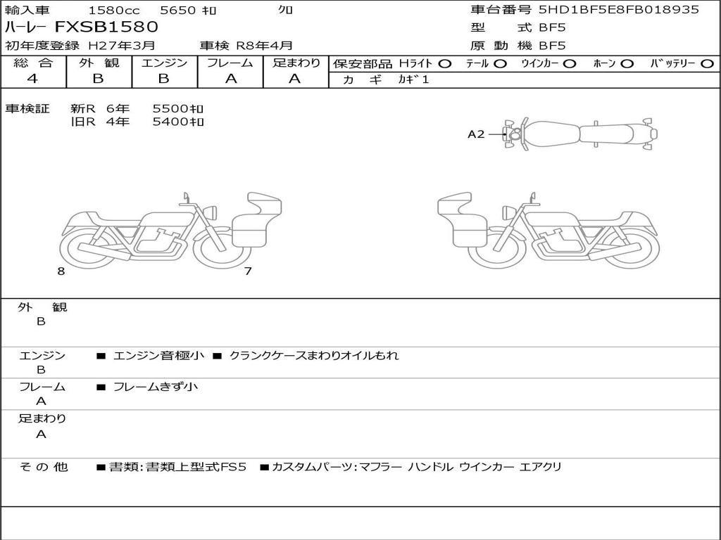 | Номер рамы / VIN | 5HD1BF5E8FB018935 |