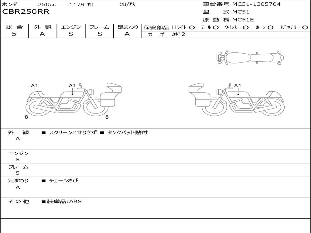 | Номер рамы / VIN | MC51-1305704 |