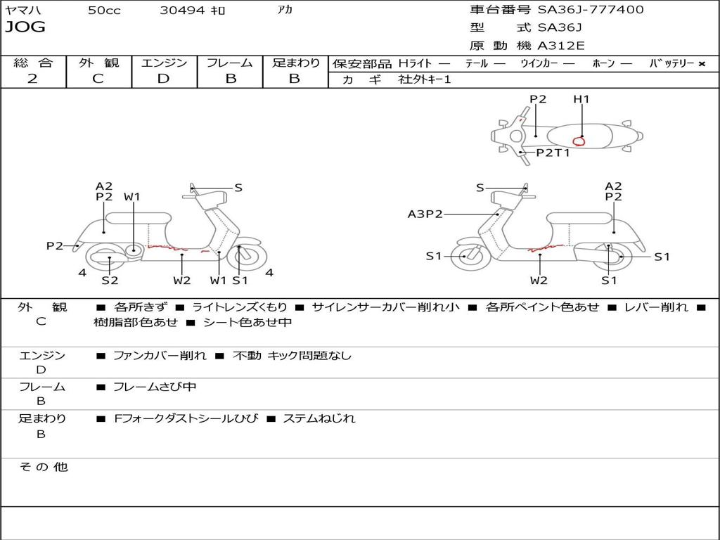 | Номер рамы / VIN | SA36J-777400 |