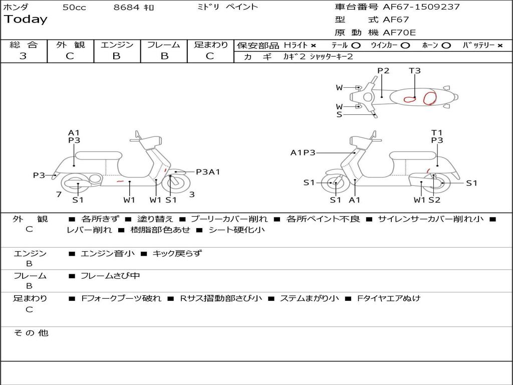 | Номер рамы / VIN | AF67-1509237 |