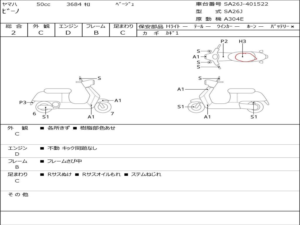 | Номер рамы / VIN | SA26J-401522 |