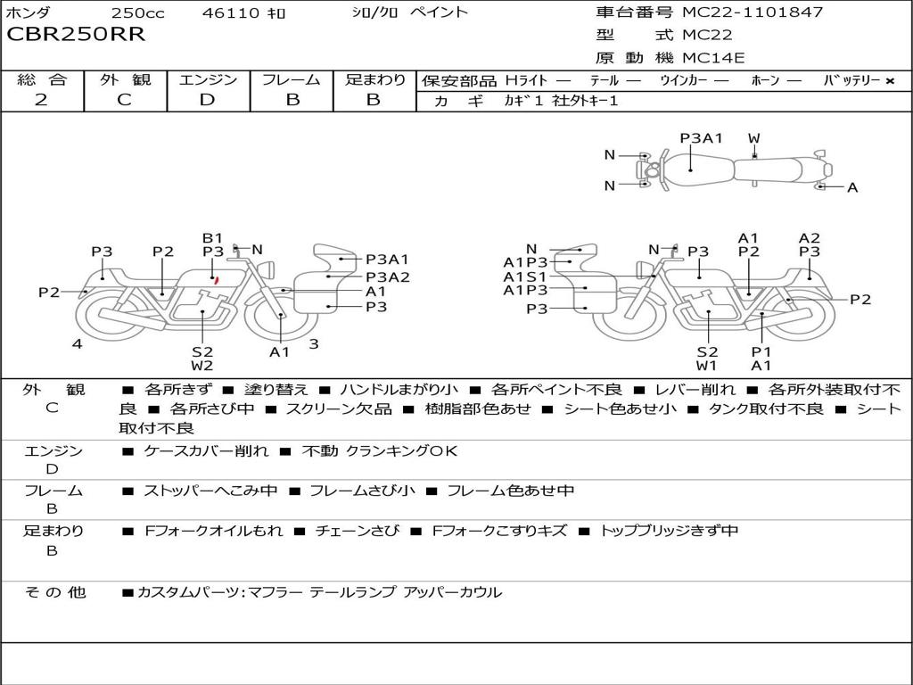 | Номер рамы / VIN | MC22-1101847 |