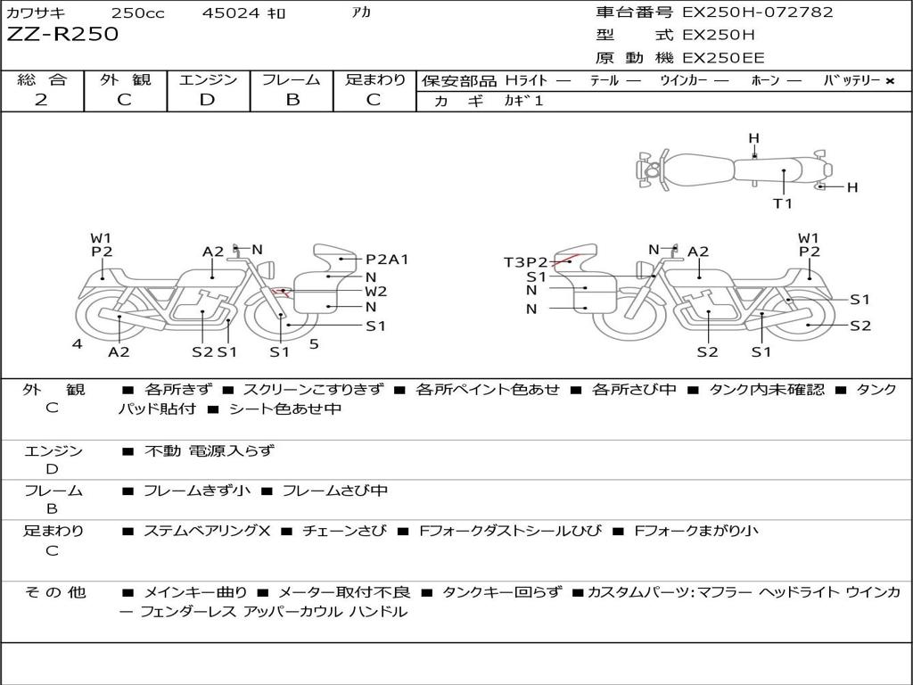 | Номер рамы / VIN | EX250H-072782 |