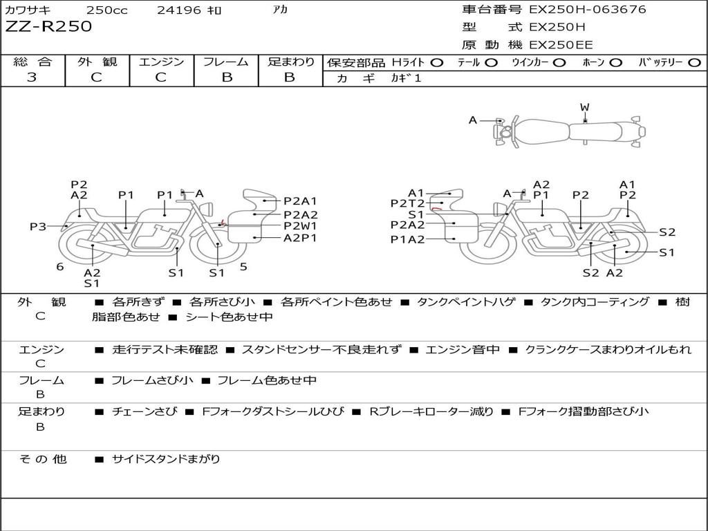 | Номер рамы / VIN | EX250H-063676 |